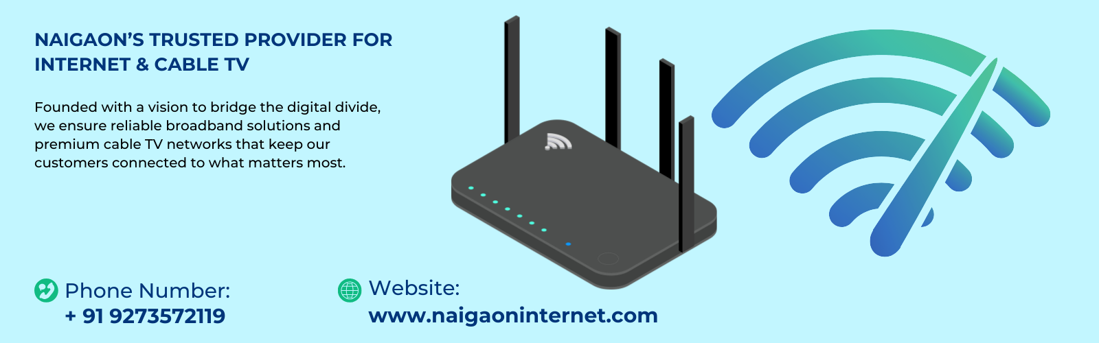 We offer high-speed broadband internet and digital cable TV services for homes and businesses in Naigaon.